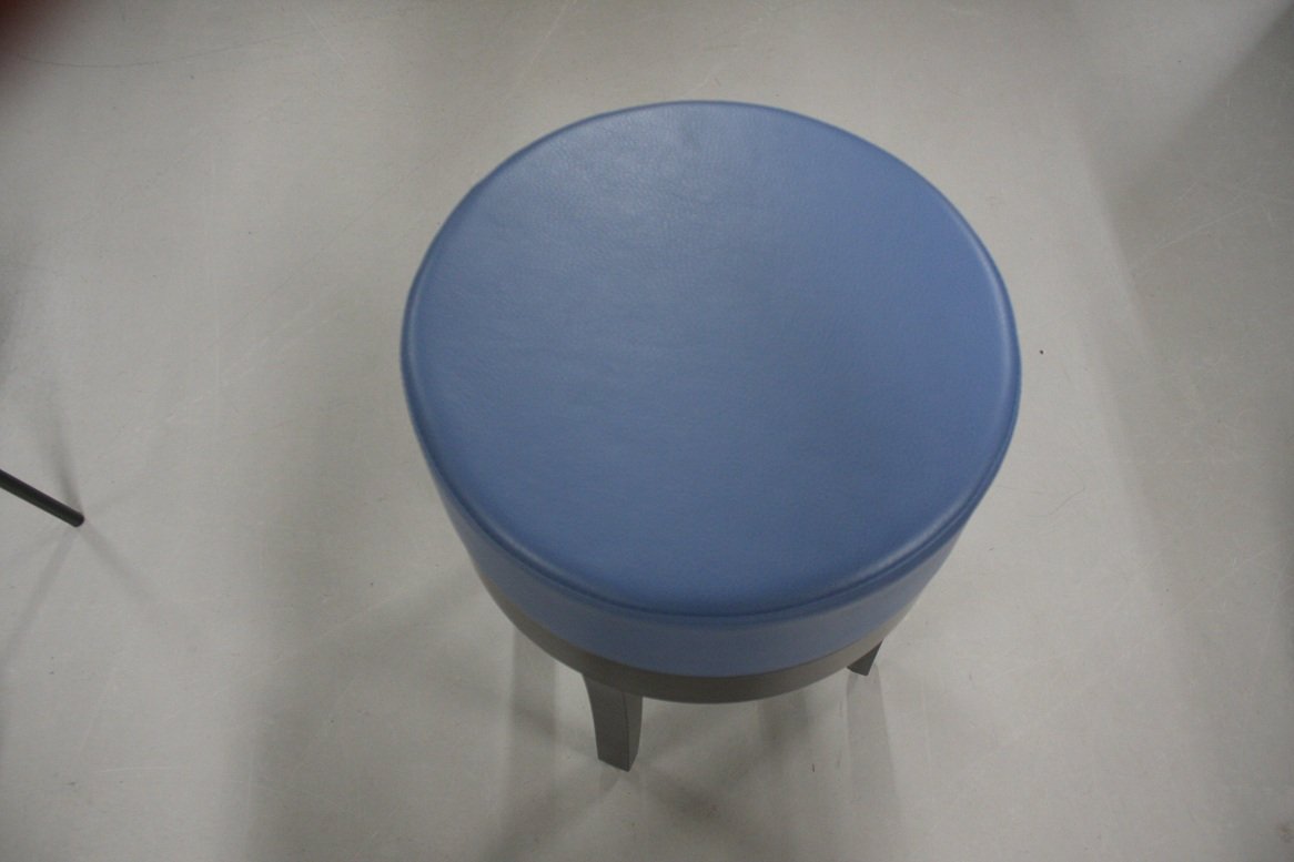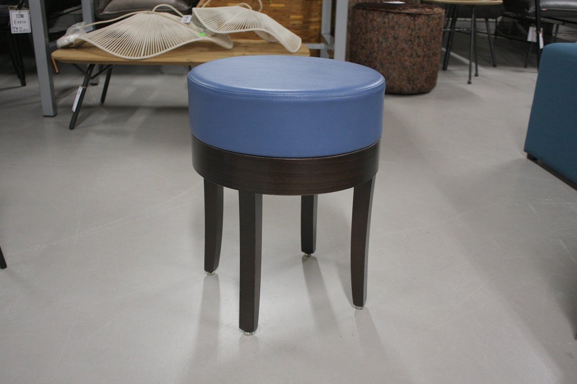 Houten frame en een stoffering van kunstleder in een mooie blauwe kleur !