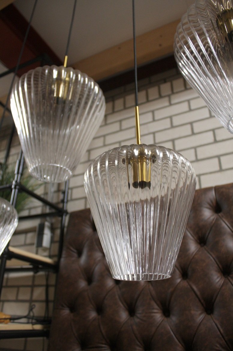 Sfeervolle 5 lichts hanglamp met geribbeld glas !