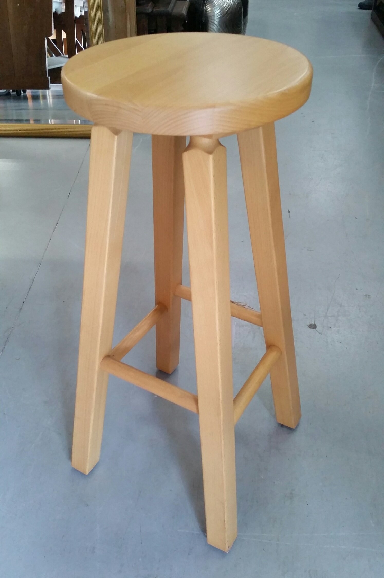Massief houten barkrukken met voetsteun en ronde zitting in de kleur beuken.