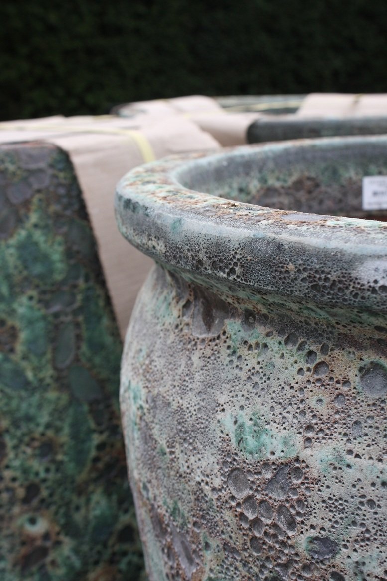 Prachtige geglazuurde bloempotten / tuinvazen in de kleur Jade.