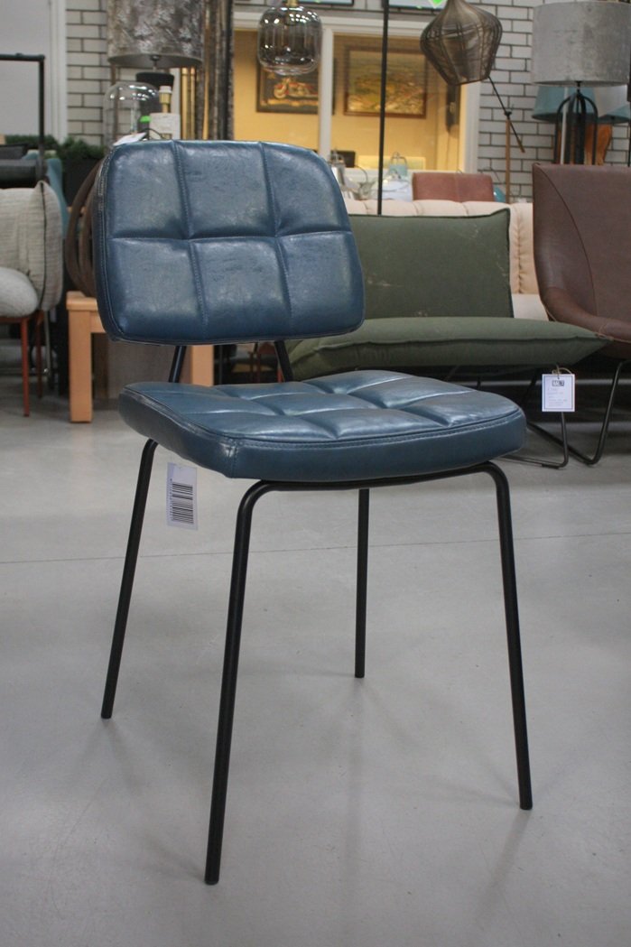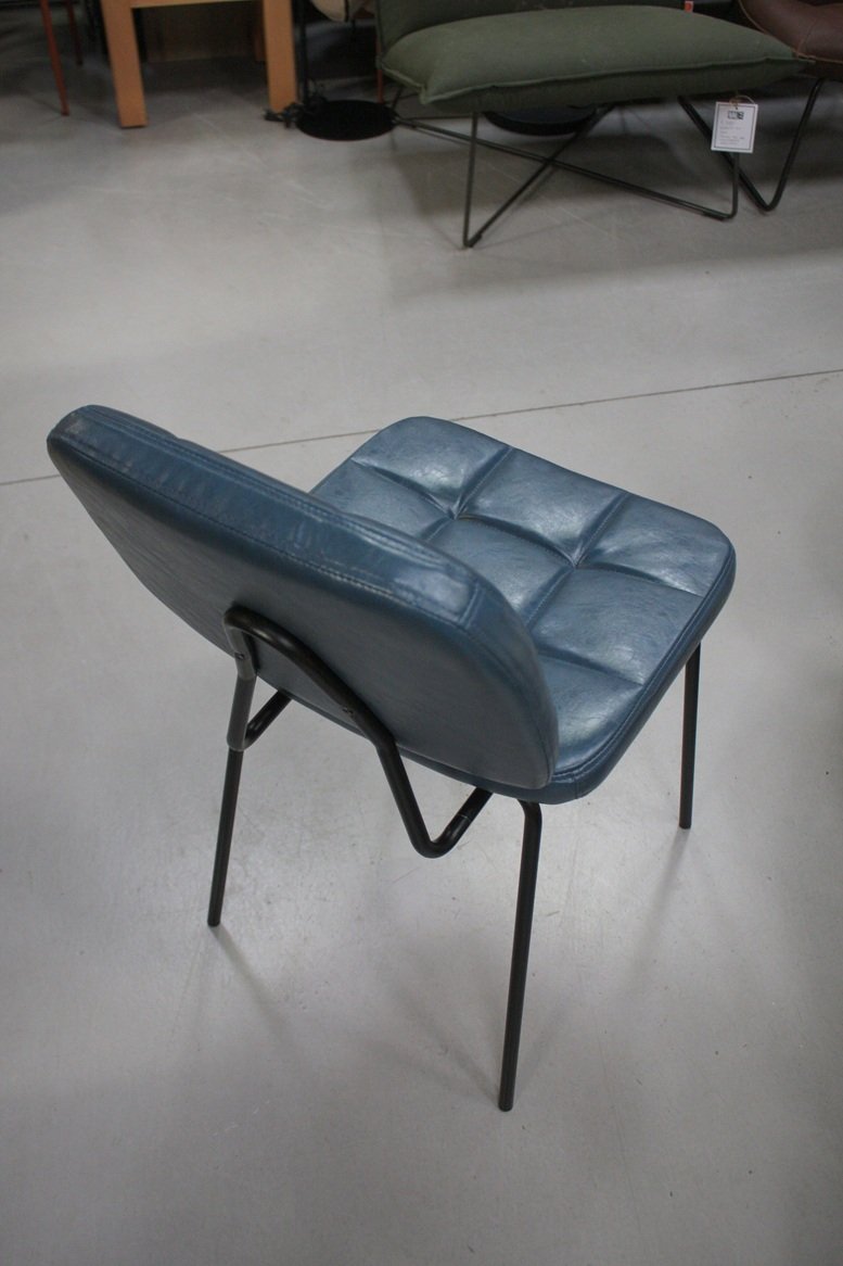 De stoelen hebben een metalen frame en zijn gestoffeerd met kunstleder in een mooie blauwe kleur.