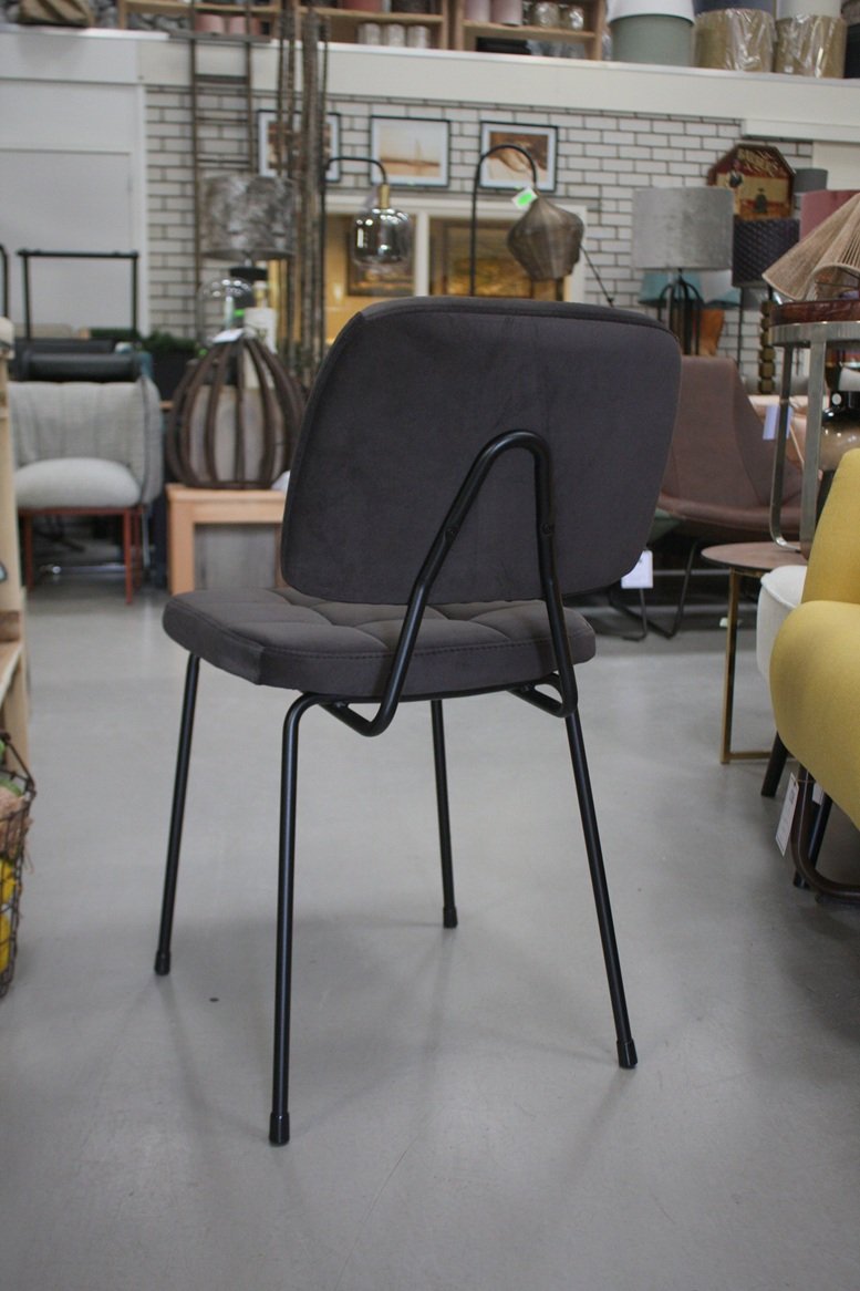 De stoelen hebben een metalen frame en zijn gestoffeerd met velvet stof in de kleur antraciet.