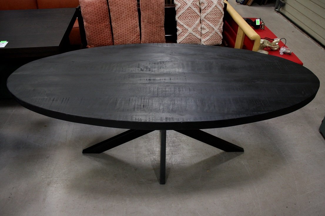 De tafel is nieuw, maar opgebouwd in onze showroom.