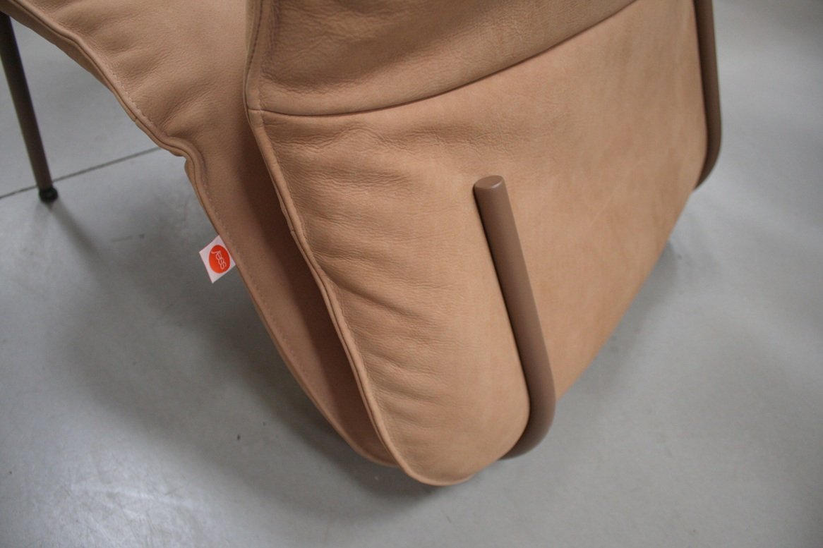 Clip – ontstaan uit een concept waarbij twee identieke gestoffeerde vormen tegenovergestelde hoeken worden samengebracht in een buisvormige stalen clip. In profiel vertonen de gestoffeerde secties een kenmerkende silhouet. De delicate vormgeving en zachtheid verhogen de elegantie van de fauteuil en brengen de schoonheid van zijn inherente symmetrie naar voren. Clip is veel meer dan een aantrekkelijk zitmeubel – het presenteert een onberispelijke studie in de vermenging van vorm en functie.