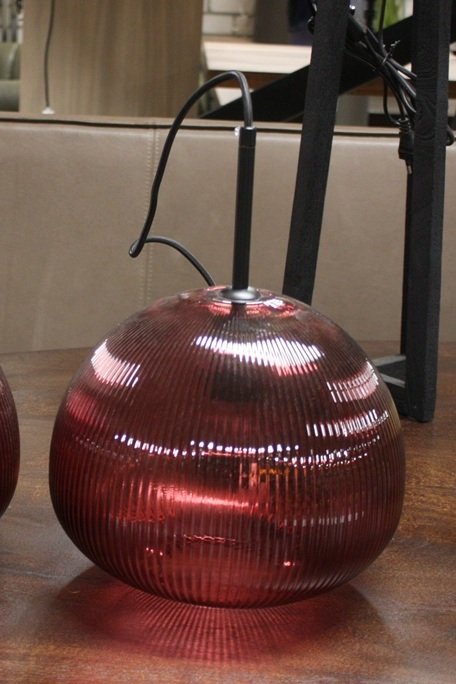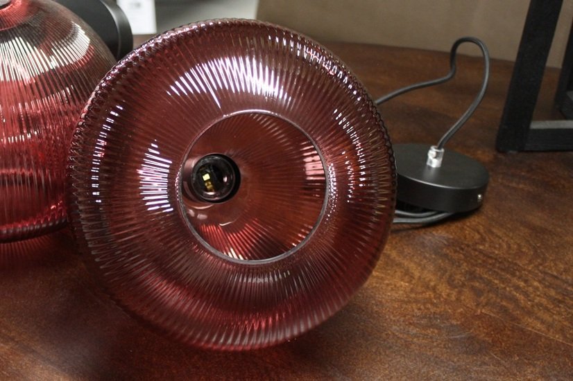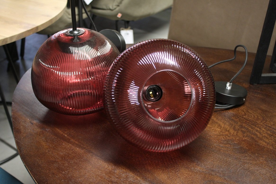 Hippe hanglampen gemaakt van ribbelglas in een mooie Burgundy kleur.