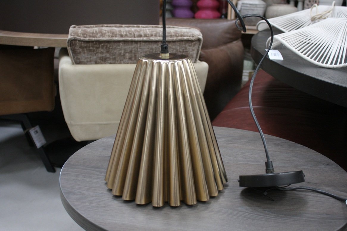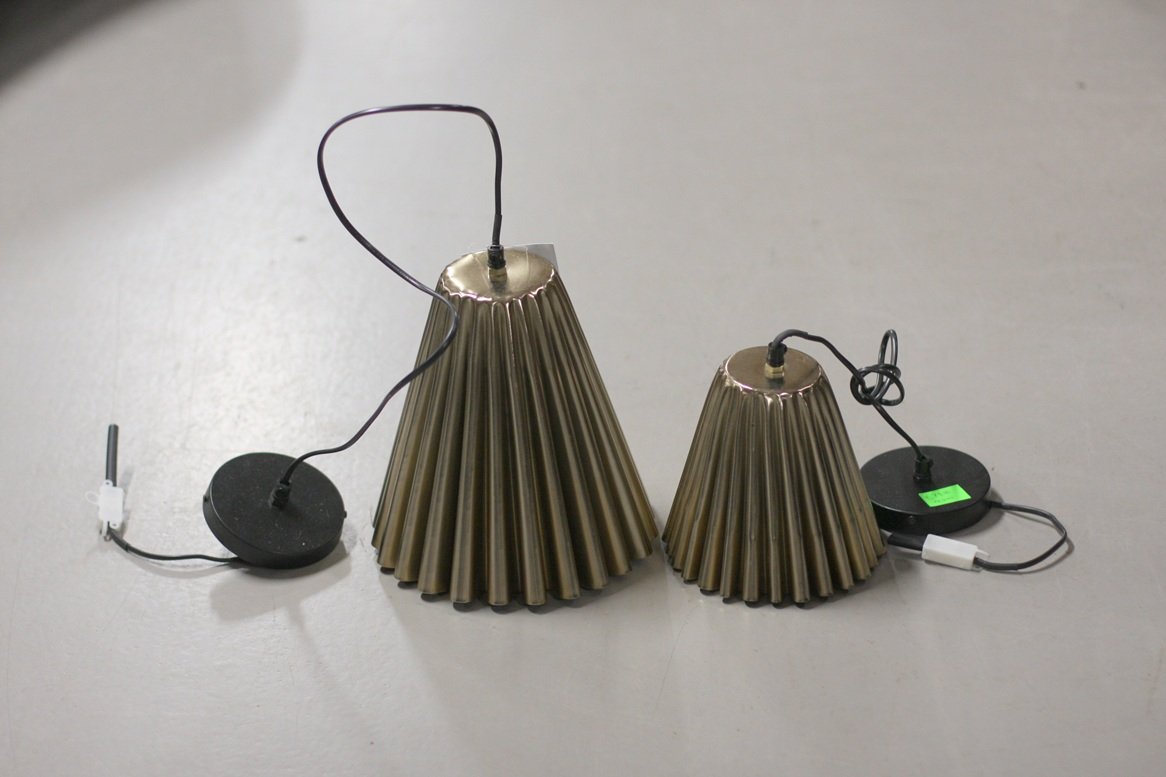 Set van 2 leuke aparte ronde metalen hanglamp met ”geplooide” kap.