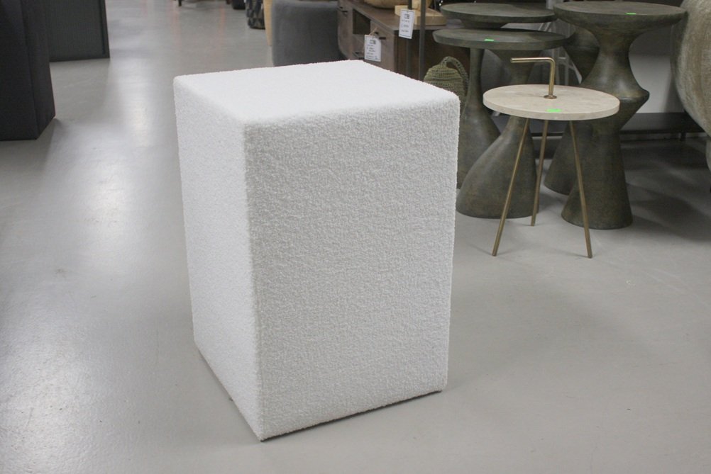 Set van 2 hoge hockers / bijzettafel / nachtkastje gestoffeerd met zachte teddy / boucle stof !