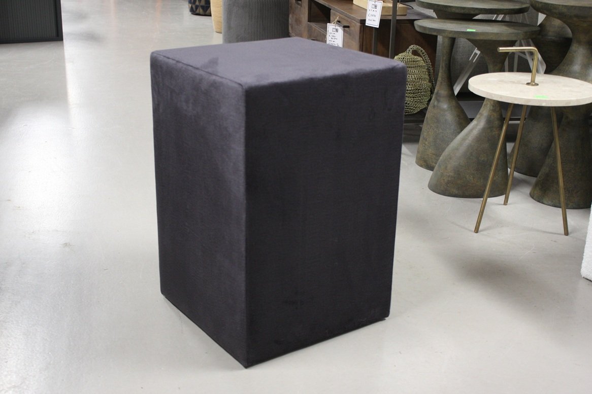 Set van 2 hoge hockers / bijzettafel / nachtkastje gestoffeerd met velvet stof in de kleur antraciet.