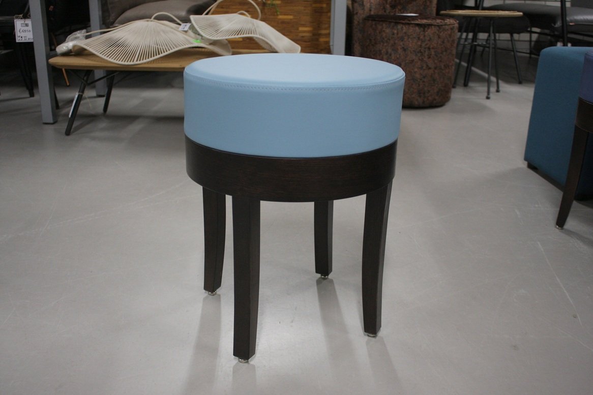 Houten frame en een stoffering van kunstleder in een mooie lichtblauwe kleur !