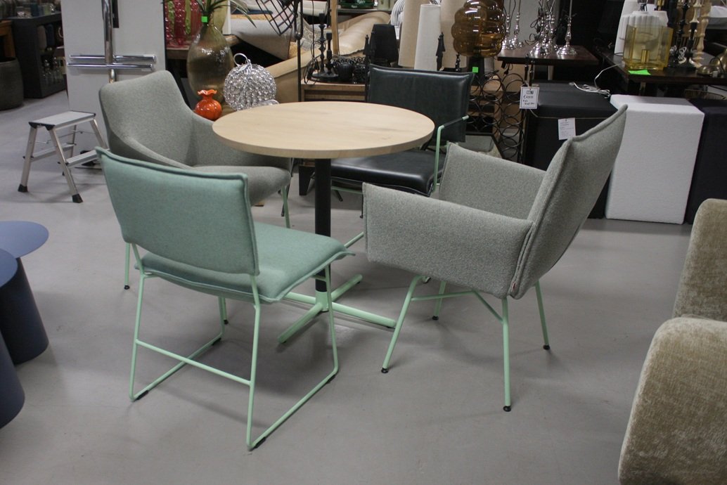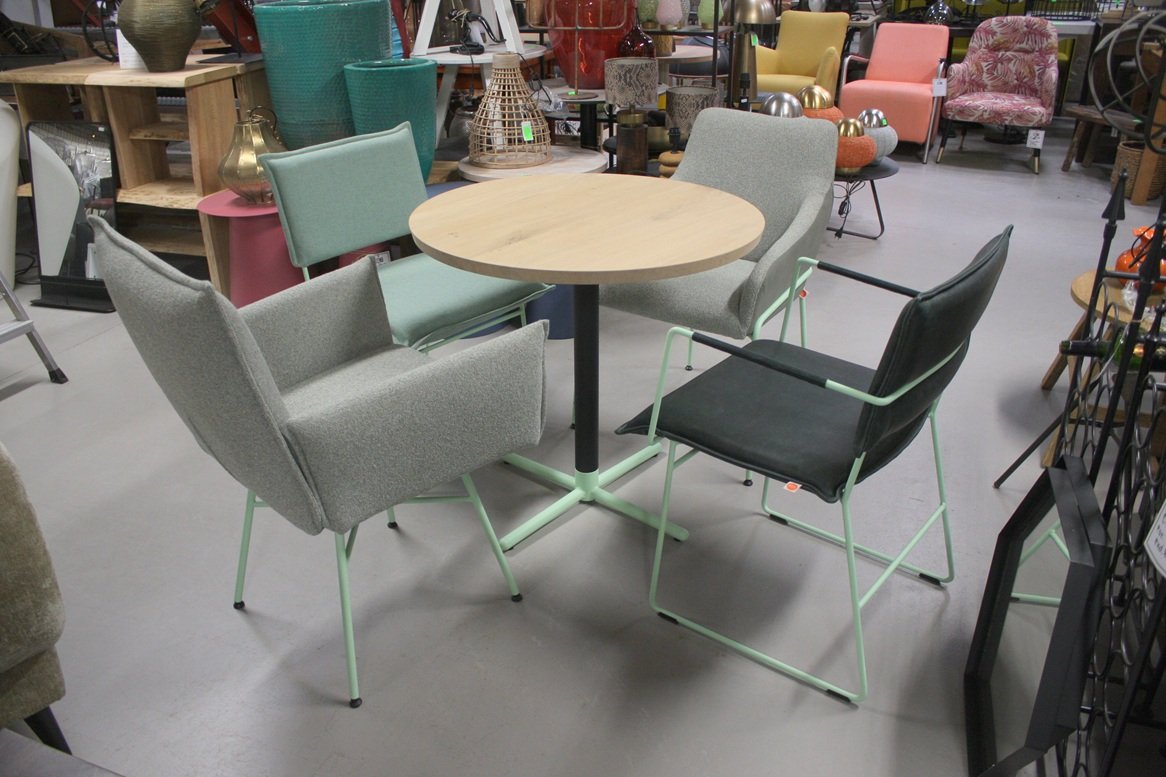 Ronde eettafel + 4 eetkamerstoelen Jess design