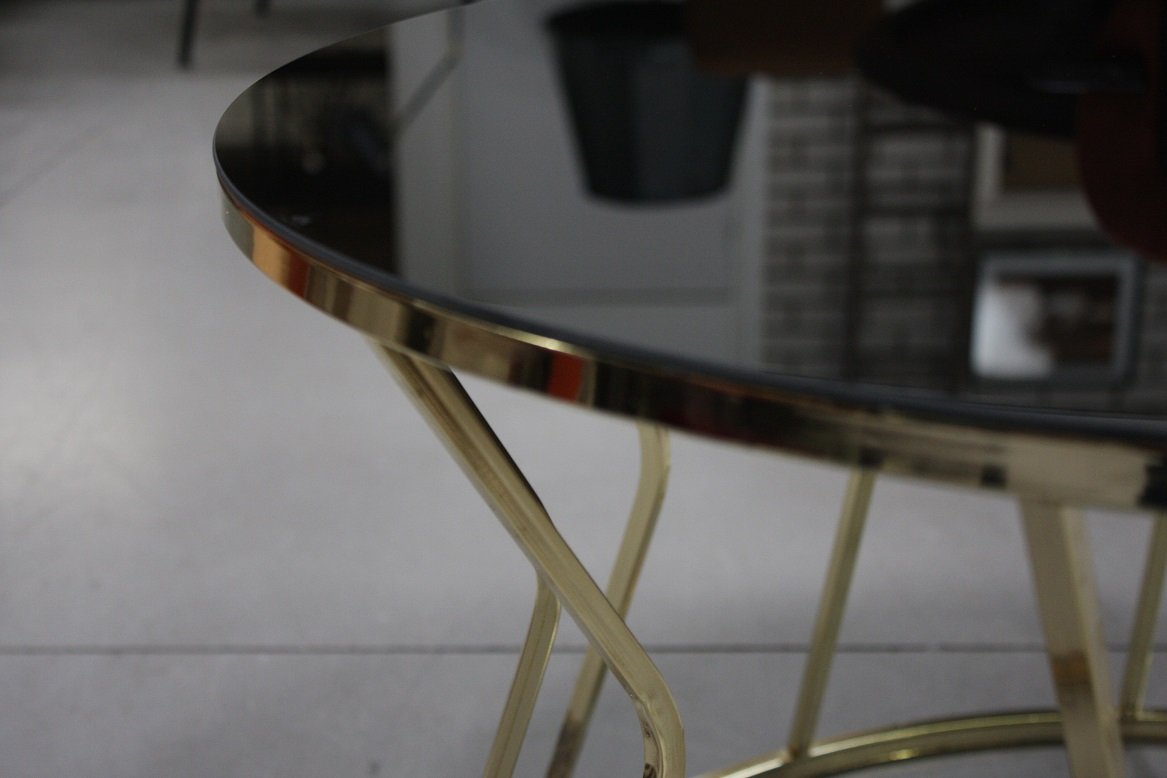 De salontafel heeft een metalen frame (goud) en een blad van zwart spiegelglas !