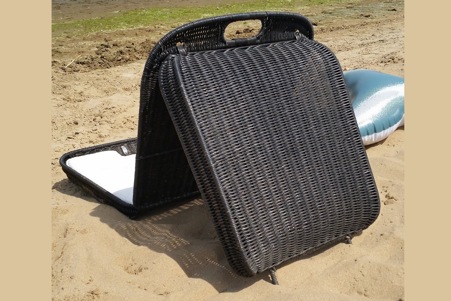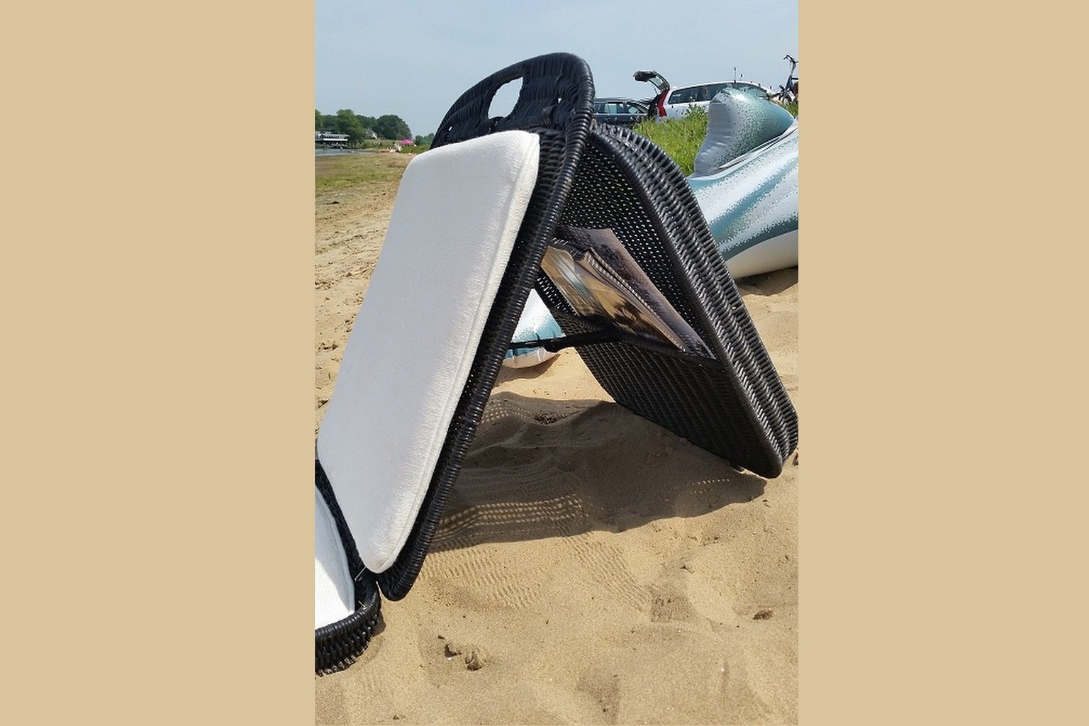 De stoel is gemakkelijk als ”koffer” mee te nemen, en er is ook nog ruimte voor tijdschriften of een boek.