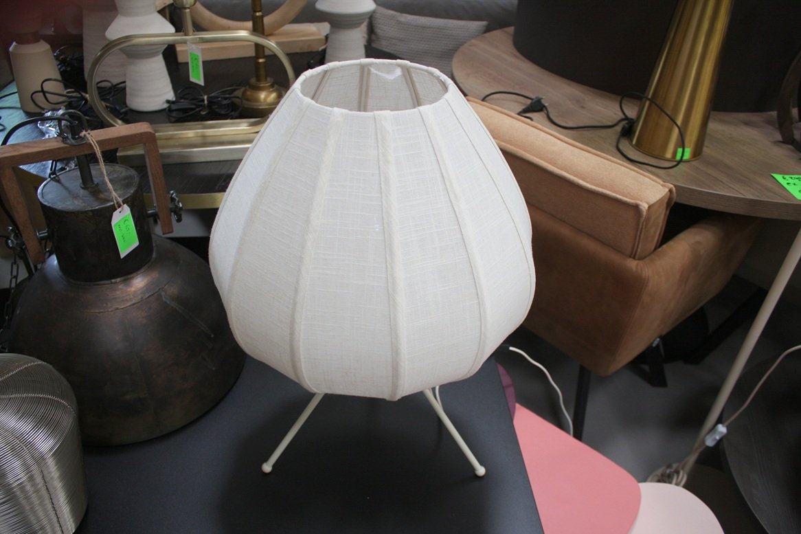 Leuke stoffen tafellamp creme in een mooie lampionvorm.