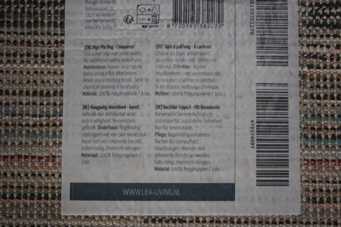 Het vloerkleed is nieuw, maar uit de verpakking voor de foto.
