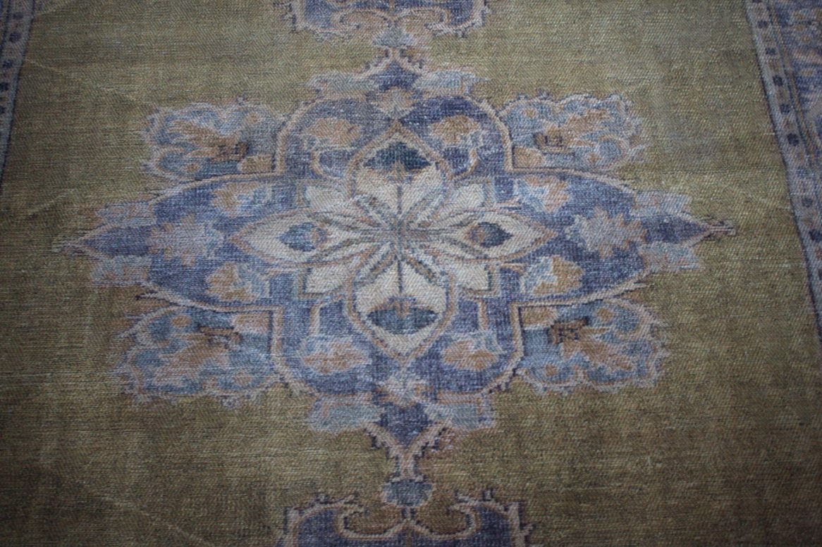 Mooi sfeervol vloerkleed Perzisch / vintage stijl in een wame okergele kleur.
