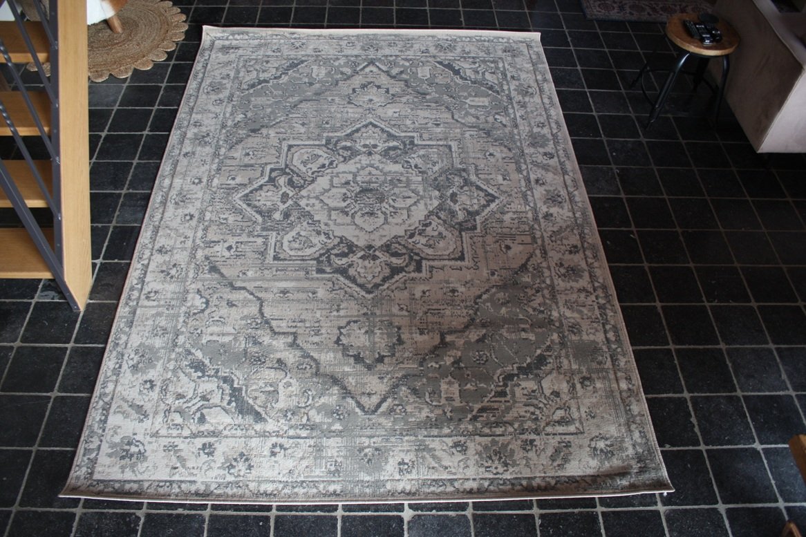 Het vloerkleed is nieuw, maar uit de verpakking voor de foto.