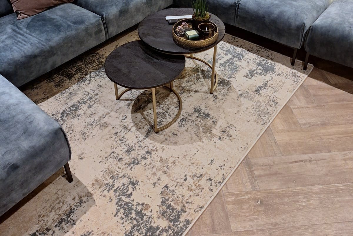 Het vloerkleed is nieuw, maar uit de verpakking voor de foto.