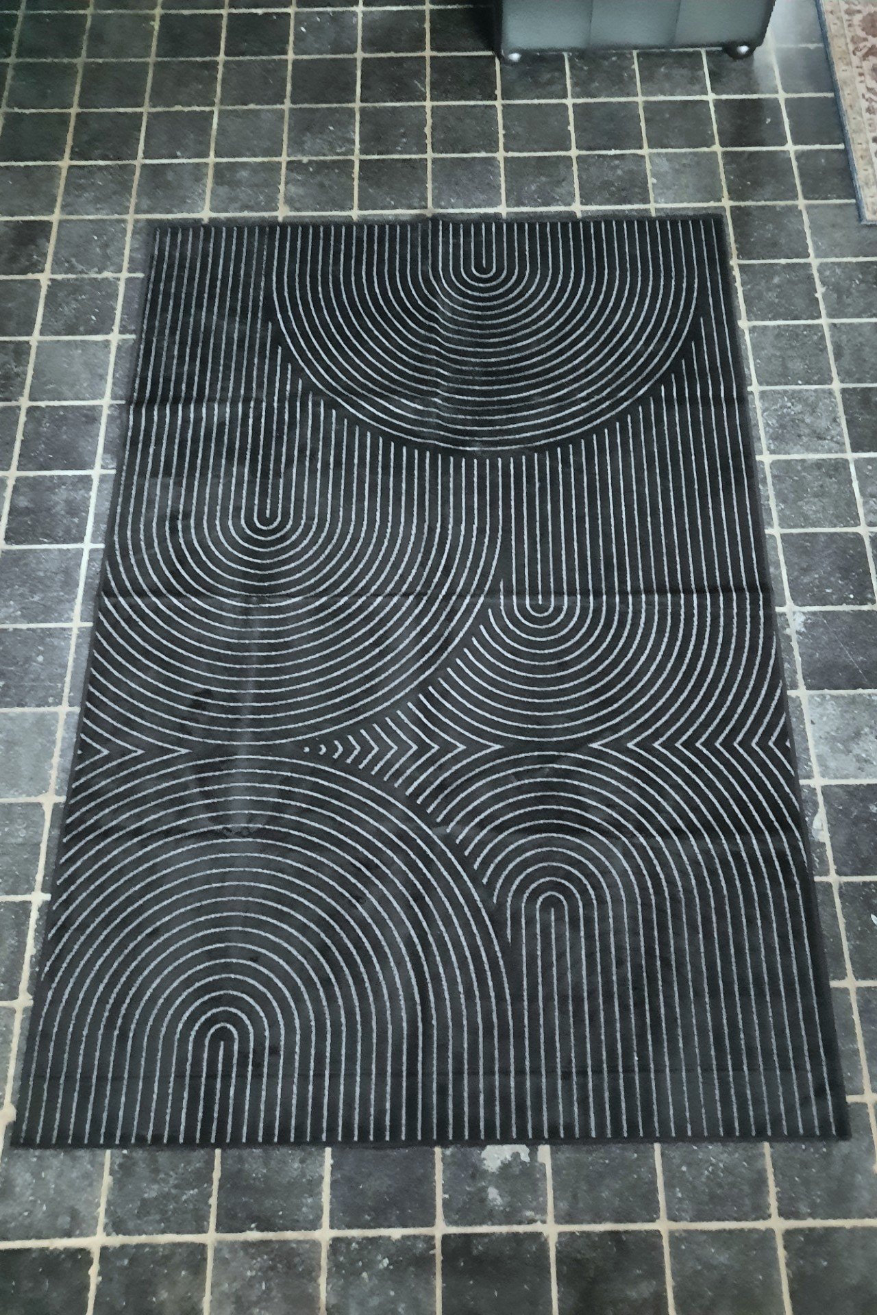 Het vloerkleed is nieuw, maar uit de verpakking voor de foto.