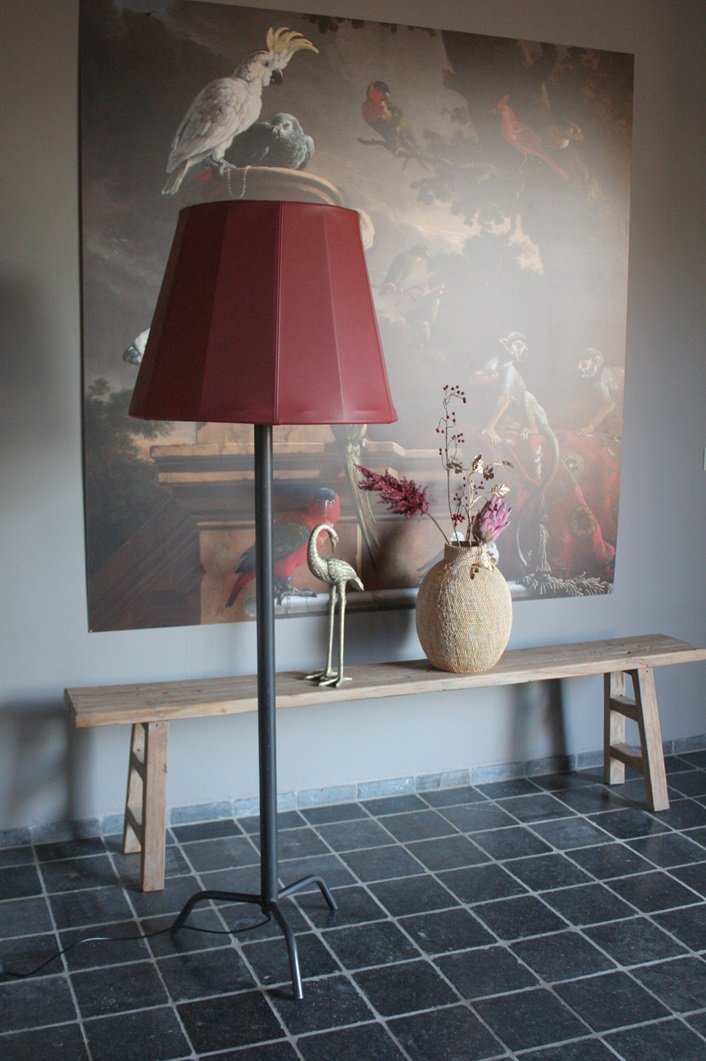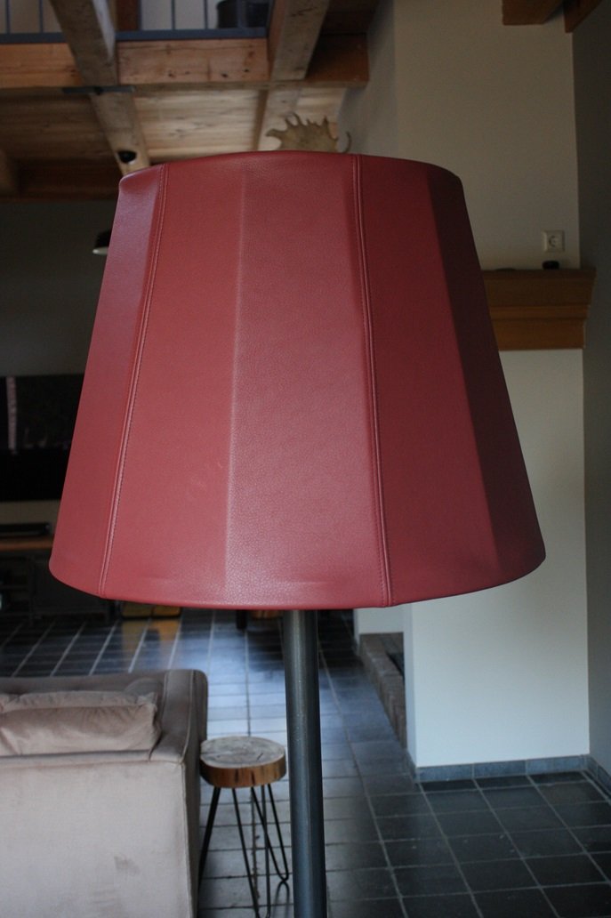 Deze vloerlampen hebben een metalen voet en een kap van echt leer in de kleur Royal Red !!